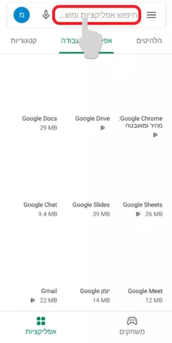 1. כדי לשלוח לנו קישור של אפליקציה, מחנות האפליקציות של גוגל, יש להיכנס לחנות PLAY המותקנת על מכשירכם.