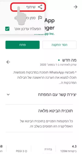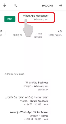 2. בתוך החנות נקיש על שורת החיפוש בחלק העליון ונחפש את האפליקציה אותה אנחנו רוצים לשתף, (אנחנו לצורך ההדגמה חיפשנו את וואטסאפ).